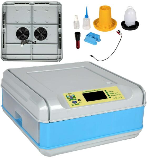 GF-2100 Automata Tojáskeltető: 64 Tojásos Inkubátor a Sikeres Keltéshez ?? Ez az automata tojáskeltető tökéletes választás házi madarak (tyúk, kacsa, liba, pulyka, galamb) tojásainak keltetéséhez. Egyszerű kezelhetőség és elegáns kialakítás jellemzi, színes LED kijelzővel, amely valós idejű információkat nyújt a hőmérsékletről, páratartalomról és a keltetési időről. Főbb jellemzők: 64 tojás befogadóképesség egy fiókban Színes LED kijelző a pontos paraméterek ellenőrzéséhez Automatikus hőmérséklet- és páratartalom-szabályozás a könnyű használatért Könnyen tisztítható és karbantartható Tartós és megbízható kivitel Minden szükséges tartozék a csomagban (lásd képek) Előnyök:Időt takarít meg: Az automatikus szabályozásnak köszönhetően nem kell folyamatosan figyelnie a keltetést. Nagy hatékonyság: A megfelelő hőmérséklet és páratartalom biztosítja a magas keltetési arányt. Egyszerű használat: A színes LED kijelző és az intuitív kezelőfelület könnyűvé teszi a használatát. Kiváló ár-érték arány: Megfizethető árú, kiváló minőségű termék. Mit tartalmaz a csomag? A csomag tartalmazza a tojáskeltetőt, valamint az összes szükséges tartozékot a sikeres keltetéshez, beleértve a itatókat és etetőt is. (lásd képek) Rendelje meg most, és kezdje el a saját háziállatok nevelését!